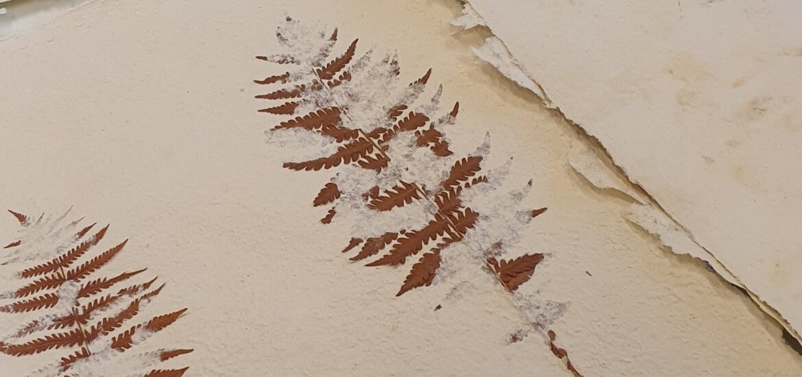 Judith Rosema van Het Inkt Atelier maakt naast planteninkt ook herinneringspapier. Sinds een tijdje heeft ze een enorme papiermaakmachine in haar werkplaats. Ik vroeg haar: zou ik wat kunnen maken van dat behang, als een soort herinnering aan de vorige bewoners, het verleden van het huis waar ik nu in mag wonen en voor zorgen? Zou ik er bijvoorbeeld… een lampenkap van kunnen maken?