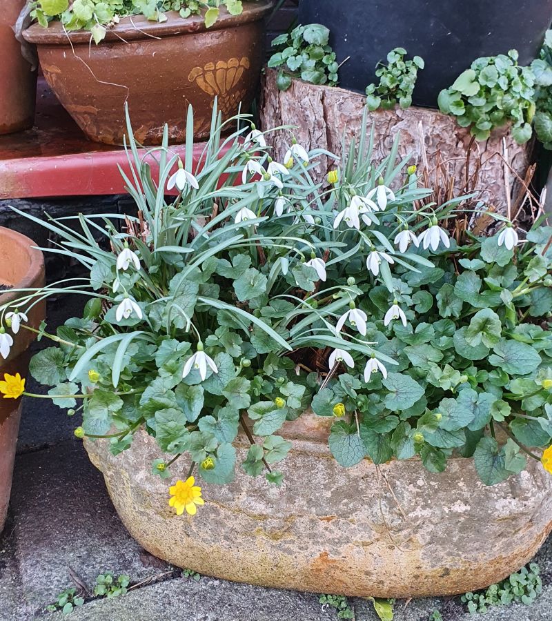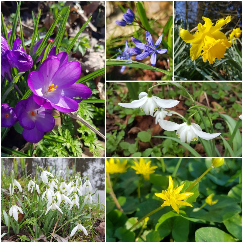 - De witte sneeuwklokjes, de roze helleborussen, andere eerste lentebloemen.
