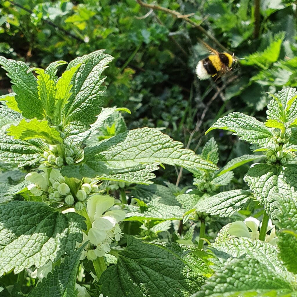 - Het gezoem van de eerste insecten op de krokussen en in de witte dovenetel, zoals de aardhommel.